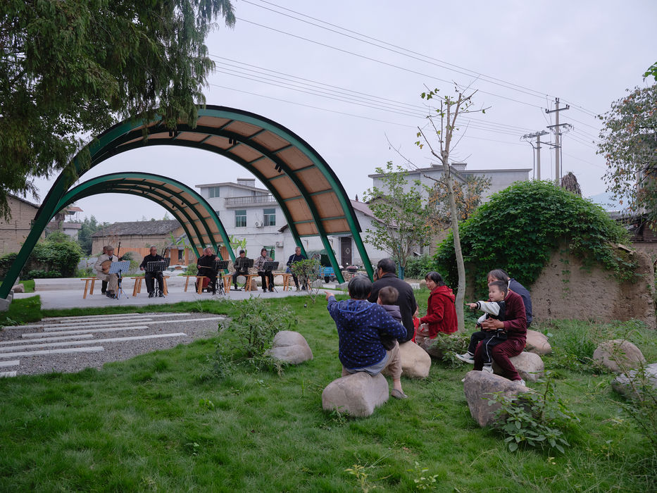 至于硬装材料,经济且耐久的水磨石被选为广场主要铺地材料,而小径则巧妙地采用了场地周围回收的瓦片和石板,体现了环保与历史的双重意义。此外,场地的植被设计均选用了当地特色的传统菜地植物,更在场地周边移植了之前未受到适当保护的茶树,以传承和延续茶文化。